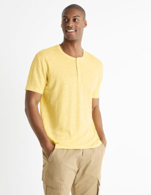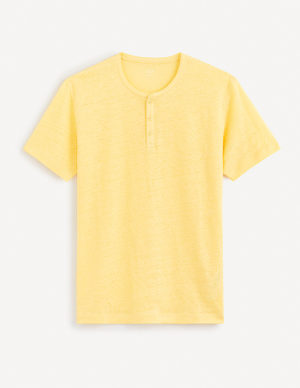 XLФутболка з повітряного льону з круглим вирізом горловини на ґудзиках у верхній частині