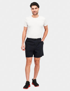 SШорти з тканини із суміши льону, ліоцелю та бавовни. Класичний крій зі складками вгорі. Прорізні діагональні кишені з боків та задні кишені. Застібається на блискавку та ґудзик