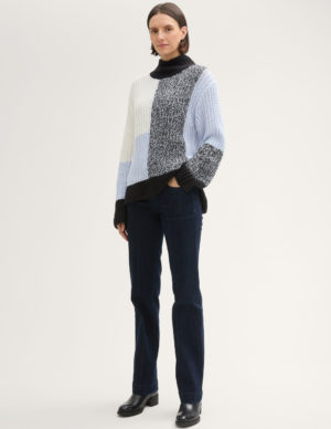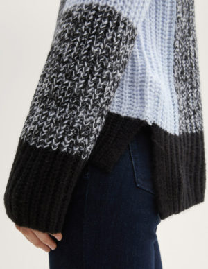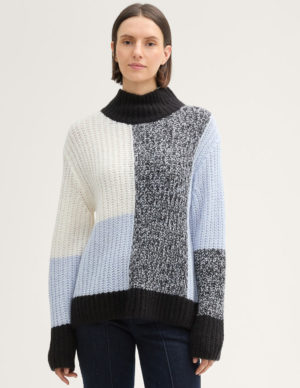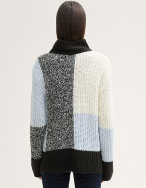 M L XL XXLСветр колор-блок із пряжі з додаванням вовни. Висока горловина, спущений плечовий шов