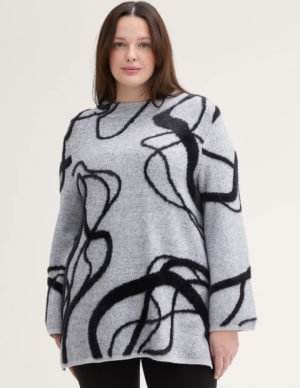 XXL 6XL 7XLСветр з абстрактним візерунком із додаванням вовни, круглий виріз горловини