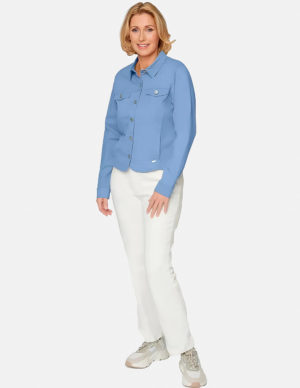 S 3XLДжинсовка із бавовняного деніму з коміром, застібка на металеві ґудзики. Розрізні рукави та манжети на ґудзиках. Нагрудні кишені з клапаном та ґудзиком, спереду прорізні кишені