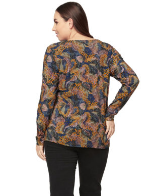 L 3XL 6XL 7XLБлуза з V-подібним вирізом горловини із віскози з принтом. Довгі рукава з еластичними манжетами