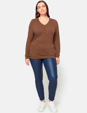 S XL 3XLСветр з V-подібним вирізом горловини з невеликою складкою внизу із суміші віскози