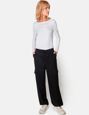 S L XL 3XLБрюки карго прямого крою із суміші віскози. Спереду прорізні кишені та великі накладні кишені з обох боків, застібається на блискавку та ґудзик спереду