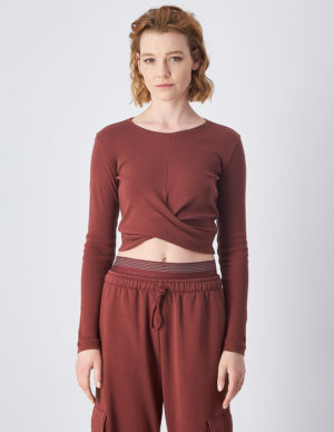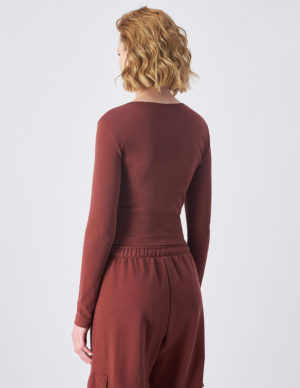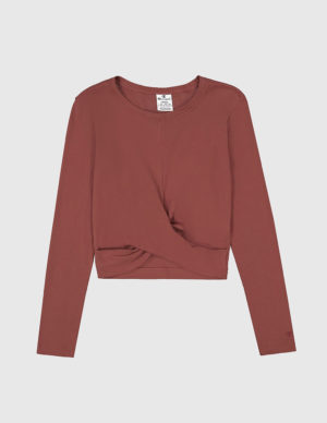 SУкорочений лонгслів з круглим вирізом горловини із бавовняного трикотажу з логотипом на рукаві