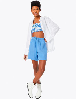 MШорти-бермуди з бавовняного деніму. Дві великі накладні, бічні кишені та дві задні кишені з клапоном. Застібається на блискавку та ґудзик