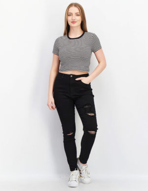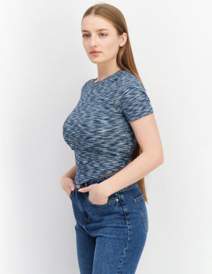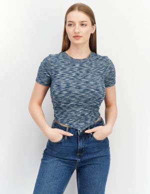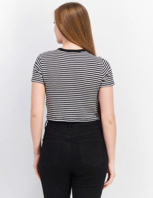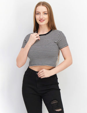 XSУкорочена футболка з круглим вирізом горловини із бавовняного трикотажу в смужку