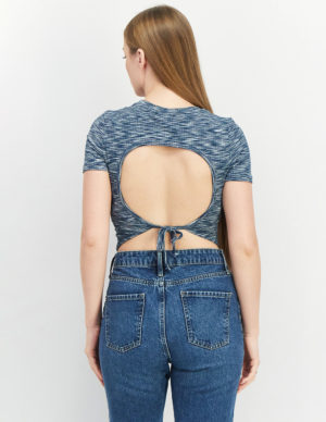 XXSФутболка з круглим вирізом горловини із суміші бавовни, асиметричний поділ. На спині виріз із зав’язкою