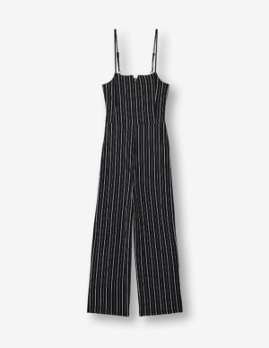 MКомбінезон з невеликим V-подібним вирізом із віскозної тканини в смужку, тонкі регульовані бретелі