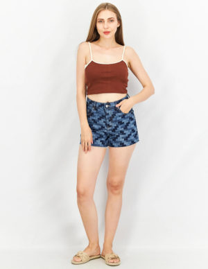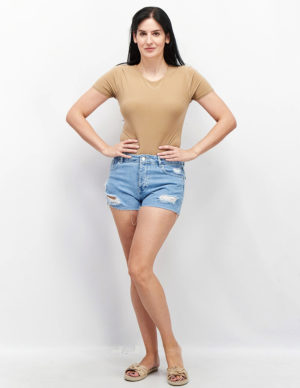 20Шорти з п’ятьма кишенями із бавовняного деніму. Застібається на блискавку та ґудзик, необроблені края