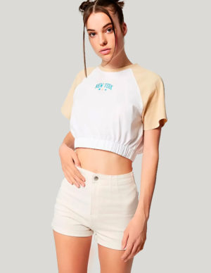 MУкорочена футболка з круглим вирізом горловини із бавовняного трикотажу з логотипом JJXX
