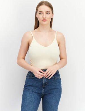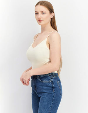 XLМайка з V-подібним вирізом горловини на тоненьких бретелях в рубчик із віскозної тканини