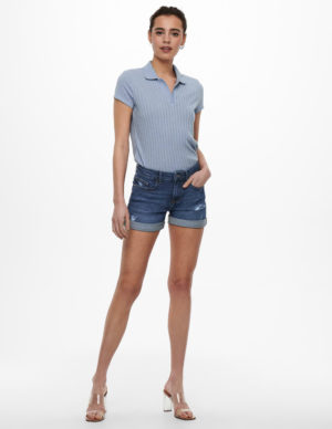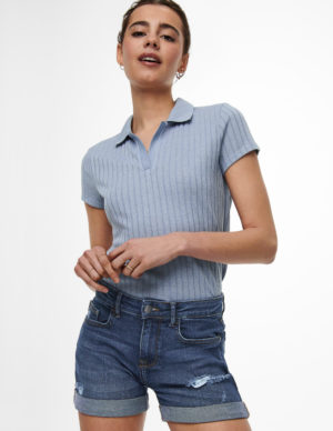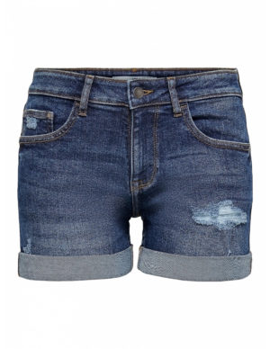 XSШорти з п’ятьма кишенями та потертими деталями із щільного бавовняного деніму, застібається на блискавку та ґудзик