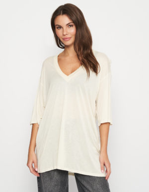 MФутболка вільного крою із м’якої віскозної тканини, V-подібний виріз горловини, спущена лінія плечового шву