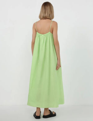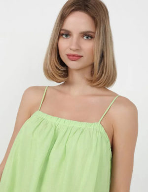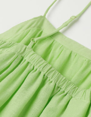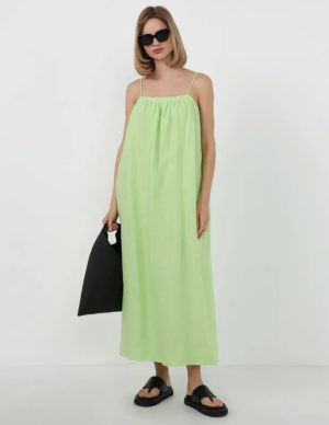 LСукня-трапеція з ніжної суміші льону та бавовни створює об’ємний силует. Довжина до середини ікри, вузькі регульовані бретелі. З підкладкою