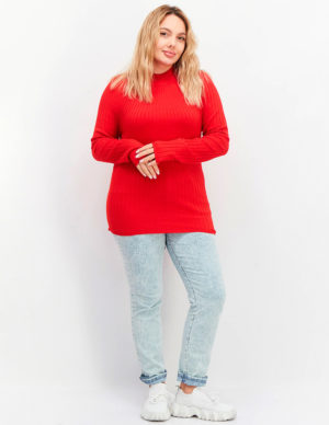 XXLГольф з високим коміром із суміші віскози. На рукавах не великі розрізи, окантовка в рубчик по краях