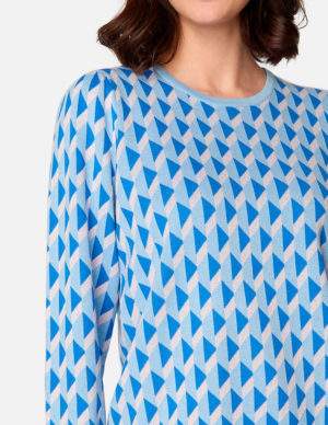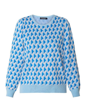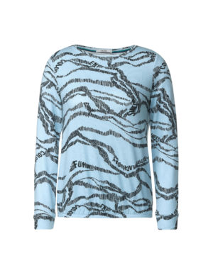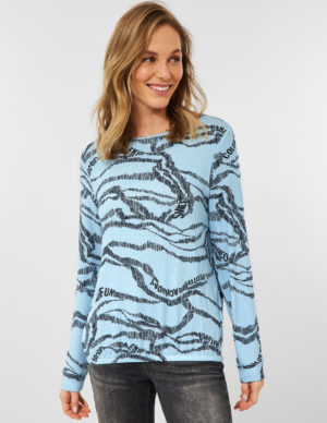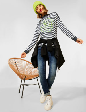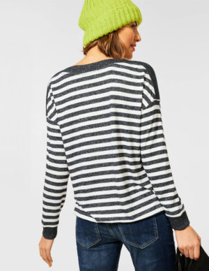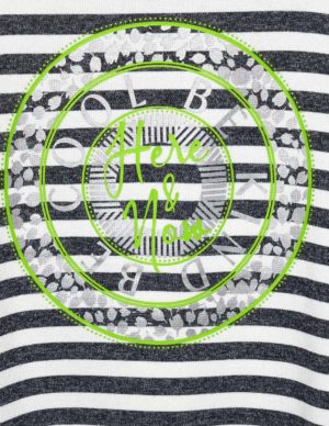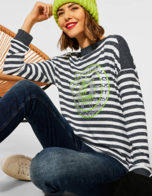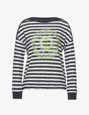 XLСветр із суміші віскози в смужку з принтом. Виріз човник, спущена лінія плечового шва та окантовка в рубчик по краях
