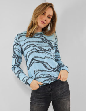 L XL XXL 3XLСветр з круглим вирізом горловини із суміші бавовни з принтом, окантовка в рубчик по краях