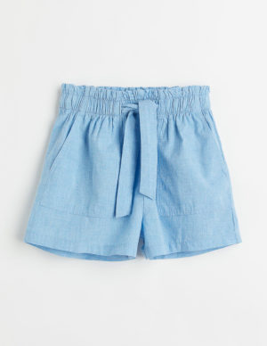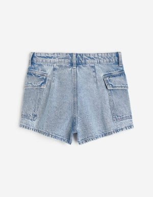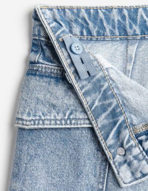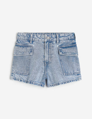 164 смШорти з п’ятьма кишенями із випраного бавовняного деніму. Легкий крій з високою регульованою талією. Накладні бічні кишені з клапаном, застібається на блискавку та ґудзик