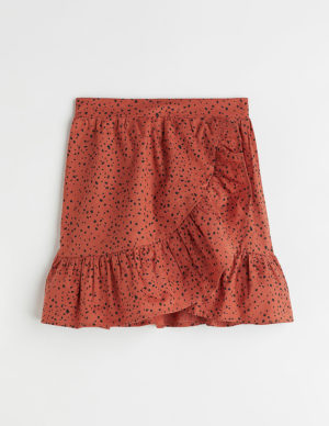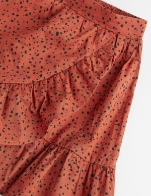 146/152Спідниця на затин спереду та оборками із бавовняного трикотажу з принтом. Еластична збірка на талії ззаду