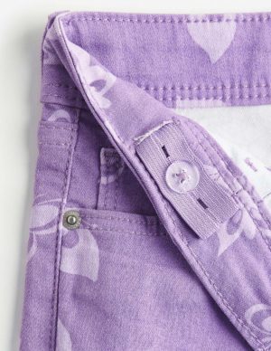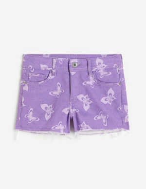 146 смШорти з п’ятьма кишенями із високоеластичного стрейч деніму з принтом. Регульована талія, вузький крій. Застібається на блискавку та ґудзик, необроблений край