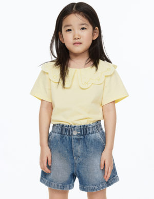 170 смШорти з регульованою талією із дуже еластичного випраного бавовняного деніму. Фальшиві кишені спереду та справжні кишені ззаду. Застібається на блискавку та кнопку, ніжки з вшитими підворотами