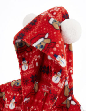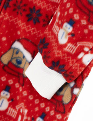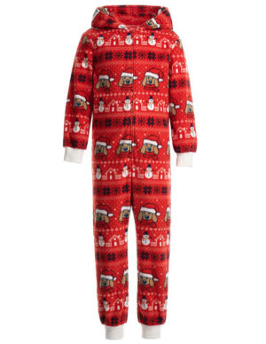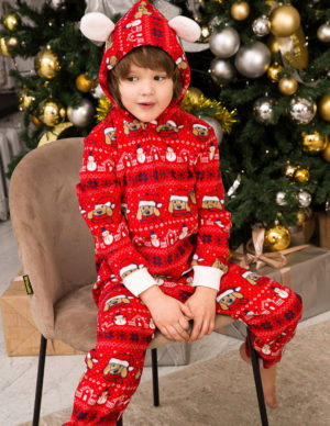 104 см 116 смПіжамний комбінезон в новорічний принт з капюшоном, спереду застібається на блискавку