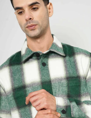 SСорочка в клітинку з двома нагрудними кишенями з клапаном. Комір з куточками, перед класичний із застібкою на ґудзики. Довгі рукава з манжетами на ґудзиках