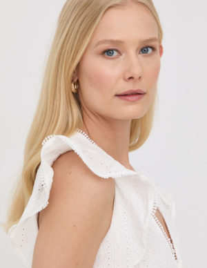 SФутболка з глибоким круглим вирізом горловини на ґудзиках у верхній частині із суміші бавовни з логотипом на рукаві. Заокруглений поділ