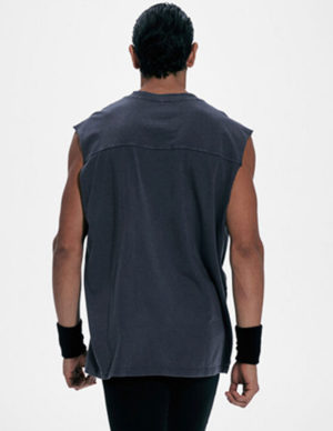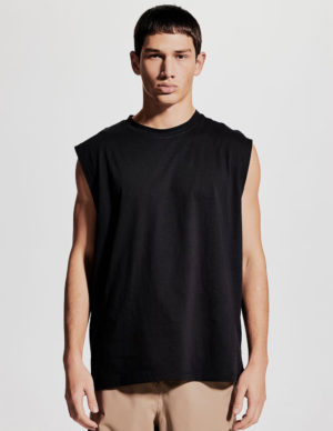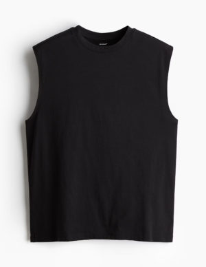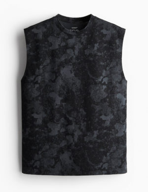 S M LСпортивна майка з трикотажу з ефектом прання та м’якістю на дотик. Вільний крій з круглим вирізом горловини з ребристою обробкою, необробленими краями навколо пройм та прямим подолом з невеликим розрізом з кожного боку