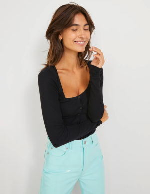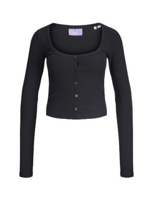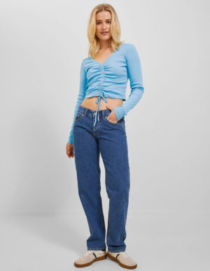 XS S M L XLУкорочений лонгслів в рубчик із м’якого трикотажу з довгими рукавами. V-подібний виріз горловини, спереду регульоване драпірування