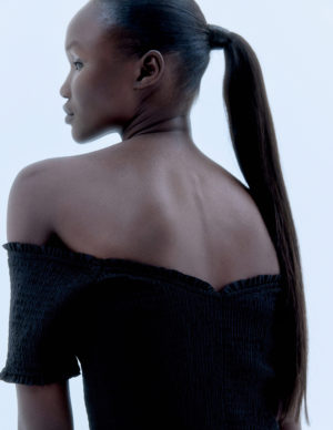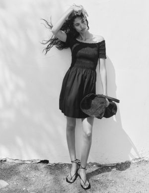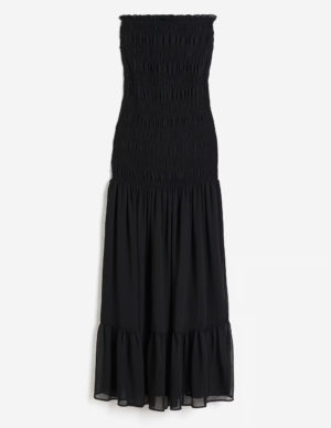 M L XLДовга сукня-бандо з прозорого шифону з оверлочною обробкою зверху та набірною частиною на ліфі та стегнах. Злегка розкльошена спідниця зі зібраним низом. Частково на підкладці