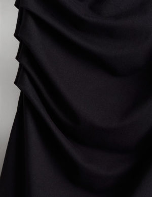 XXS XSКоротка, приталена сукня з еластичного трикотажу з невеликим коміром-стійкою та короткими рукавами. Складки на одному плечі та з одного боку для створення драпірованого ефекту