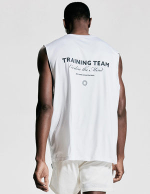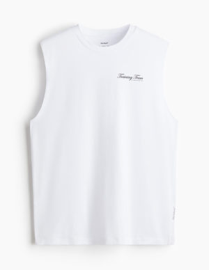 S L XLСпортивна майка з функціональної тканини з принтом та технологією DryMove™, яка допомагає відводити вологу від шкіри, забезпечуючи комфортне відчуття сухості під час руху. Вільний крій з круглим вирізом горловини з ребристою обробкою, закругленими проймами та прямим подолом