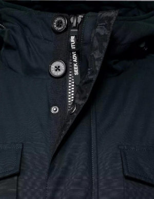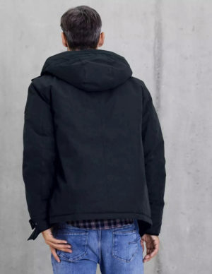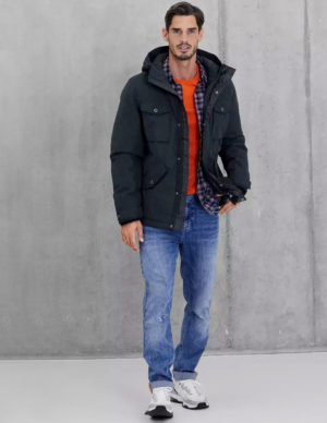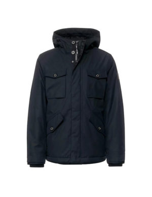 LУтеплена куртка з високим коміром та капюшоном. Застібається на приховану блискавку та кнопки спереду. Дві нагрудні кишені з клапаном застібаються на ґудзики та дві діагональні кишені знизу з клапаном застібаються на ґудзики