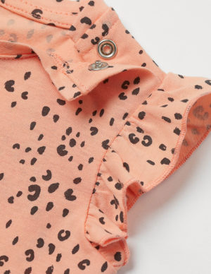 92 смФутболка з круглим вирізом горловини із бавовняного трикотажу з принтом. Внизу рукавів присборенный волан, прихована застібка на одному плечі