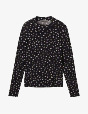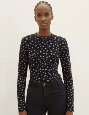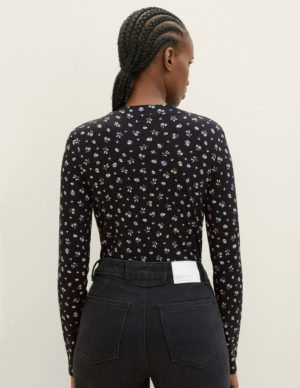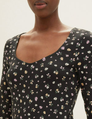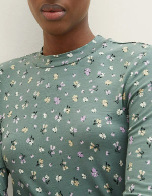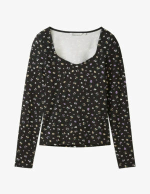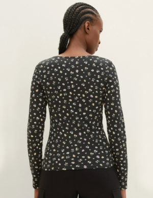 XS S M XLБлуза з ромбовидним вирізом горловини із бавовняного трикотажу в квітковий принт