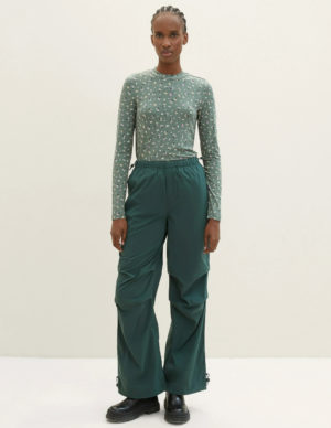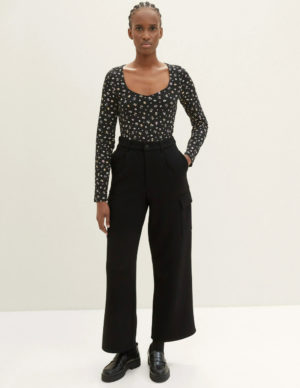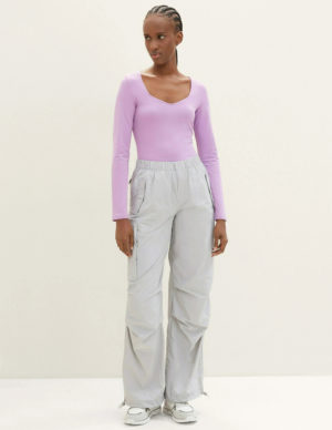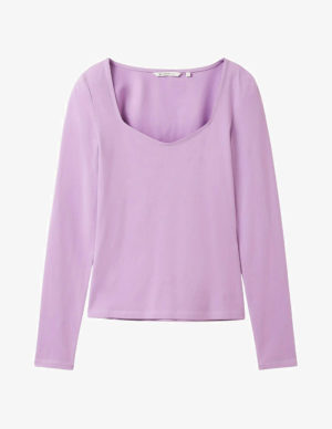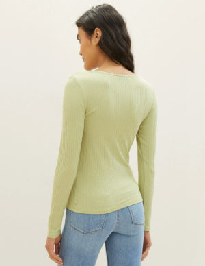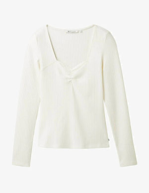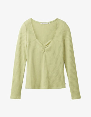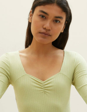 LЛонгслів зі зібраним ромбовидним вирізом горловини із суміші віскози в рубчик