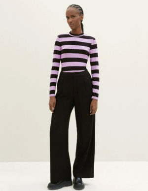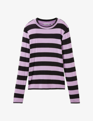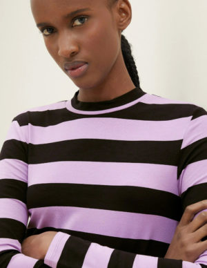 LФутболка в рубчик із бавовняного трикотажу, круглий виріз горловини, хвилястий низ