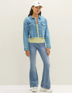 M LУкорочений трикотажний лонгслів з V-подібним вирізом горловини в рубчик, хвилясті краї