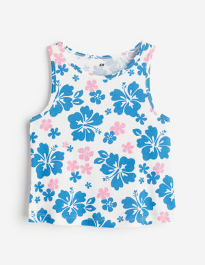 110/116 122/128Майка з круглим вирізом горловини із м’якого бавовняного трикотажу в квітковий принт