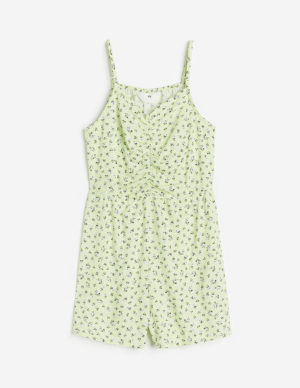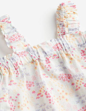 152 смКомбінезон із м’якого віскозного трикотажу з еластичним краєм горловини ззаду в квітковий принт. Вузькі регульовані бретелі, зібраний шов спереду