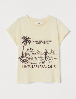 158/164Укорочена футболка прямого крою з круглим вирізом горловини із м’якого трикотажу з окантовкою по горловині та вишитим принтом