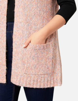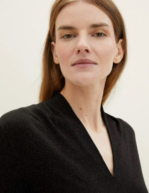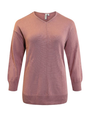 SПодовжений светр з V-подібним вирізом горловини із суміші віскози. Спущена лінія плечового шва, окантовка в рубчик по краях