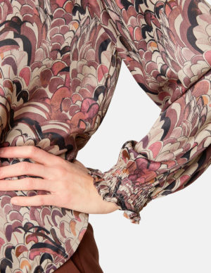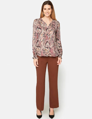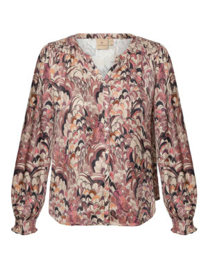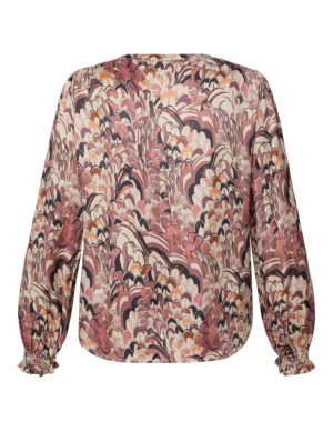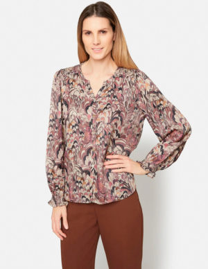 XS S M LБлуза з V-подібним вирізом горловини із віскози з принтом. Довгі рукава з манжетами на ґудзиках та кокетка ззаду