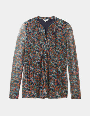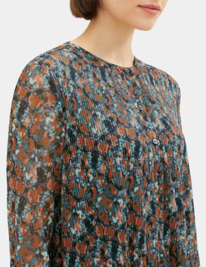 S MБлуза вільного крою з круглим вирізом головини з планкою на ґудзиках в квітковий принт