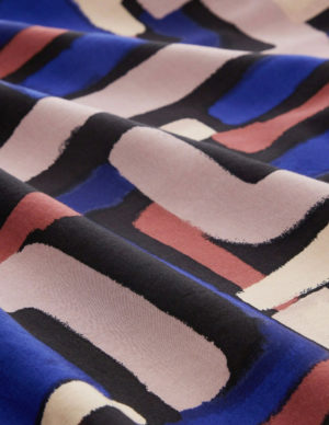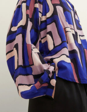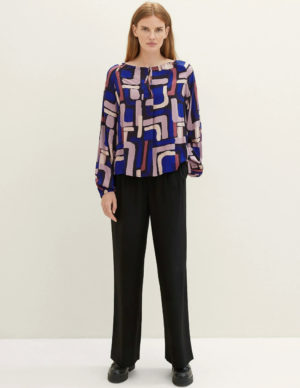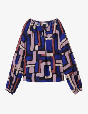 S M LБлуза вільного крою із віскози з принтом. Довгі рукава реглан з манжетами на ґудзиках, виріз човник з куліскою