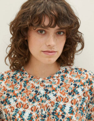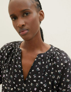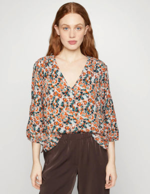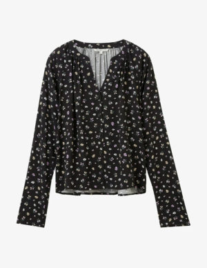 S LБлуза з V-подібним вирізом горловини із віскози в квітковий принт. Рукава три чверті з еластичними манжетами, застібається на ґудзики спереду