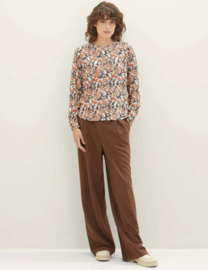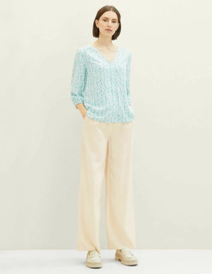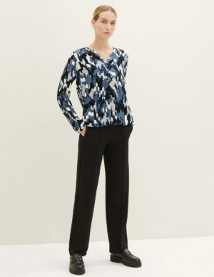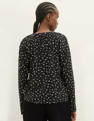 S M LБлуза з V-подібним вирізом горловини із віскози з принтом. Довгі рукава з манжетами на ґудзиках та кокетка ззаду