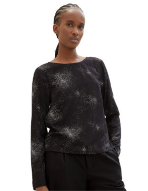 XS S MБлуза вільного крою з круглим вирізом горловини спереду та з V-подібним вирізом ззаду. Із віскози з принтом